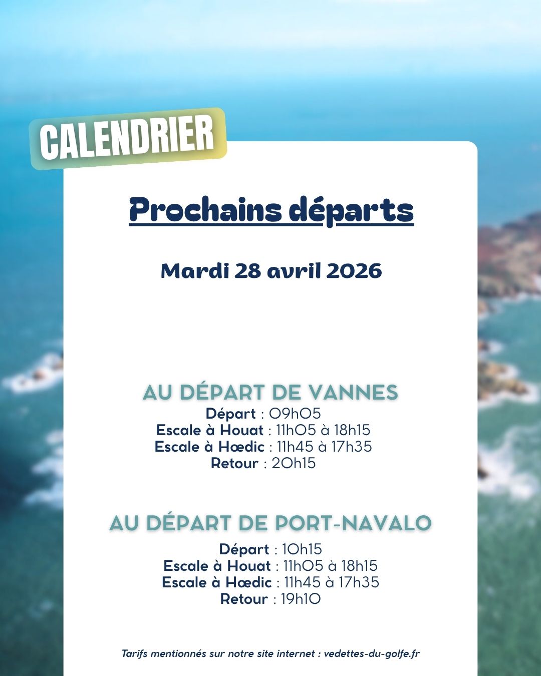 Visitez le Golfe du Morbihan depuis Vannes ou Port-Navalo et profitez également de nos traversées directes depuis Locmariaquer ou Port-Navalo en direction de l’ile aux Moines, l’ile d’Arz ou la Ville de Vannes. (calendrier de programmation)